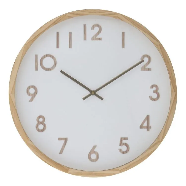 This Amalfi Leonard Wall Clock Natural/White 41.5×41.5×5.5cm is both stylish and functional. With a wooden body and classic numerals, it adds a touch of refinement to your home. Hang in your bedroom, living space, office or hallway for a complete look. Elevate interiors with this decorative clock from Amalfi.