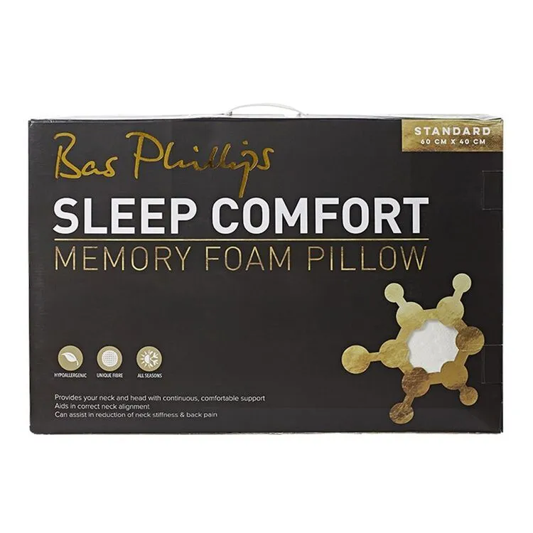 Get the luxurious sleep that you deserve with the Bas Phillips Sleep Comfort Memory Foam Standard, with a memory foam filling for restful, healthy sleep. This pillow provides your neck and head with continuous, comfortable support and aids to correct neck alignment – which can assist in the reduction of neck stiffness and back pain.