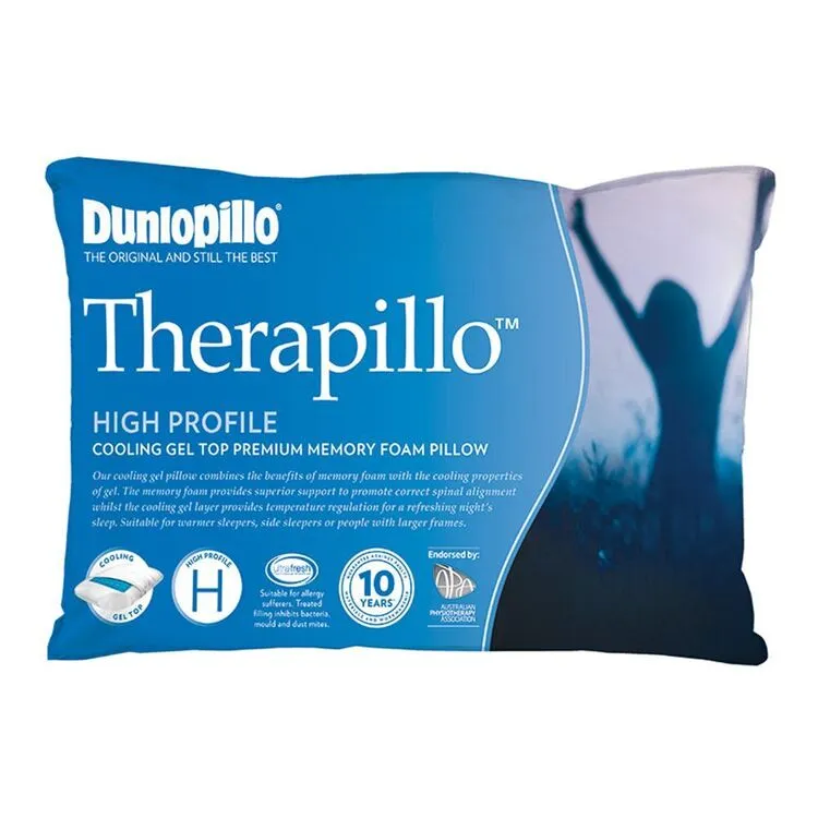 Support your neck and back with the Dunlopillo Therapillo Cooling Gel Top Pillow, a premium memory foam pillow designed to mould to the contours of your head and neck for unbeatable support! This Therapillow Cooling Gel Pillow features naturally antibacterial materials to combat bacteria, mould and dust-mites, making it perfect for allergy sufferers, while a cooling gel patch and naturally breathable materials will keep you feeling cool and fresh. With a 10 year warranty, you can purchase your pillow with peace of mind that the quality of Dunlopillo will last for years to come.