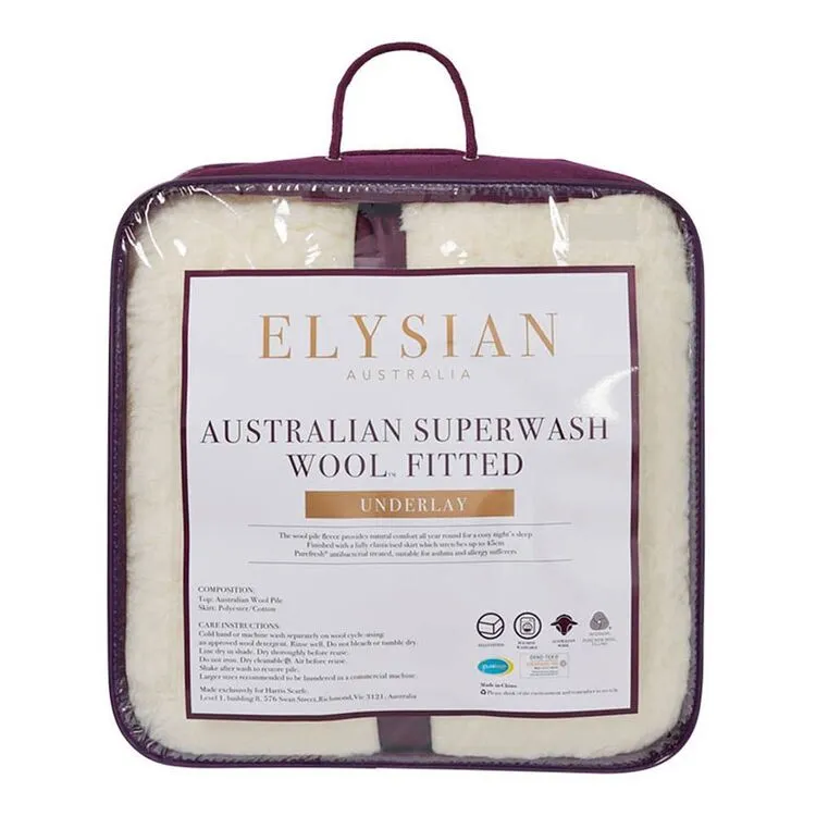 This wool filled Elysian 450 GSM Australian Washable Wool Underlay is made with Australian super wash wool pile fleece which provides added warmth and comfort for a cosy sleep environment. It features a fully fitted elasticised skirt which stretches to fit mattresses to 45 cm, and has been finished with pure fresh anti-bacterial treatment making this quilt suitable for asthma and allergy sufferers. This quilt is machine washable for easy care and maintenance.