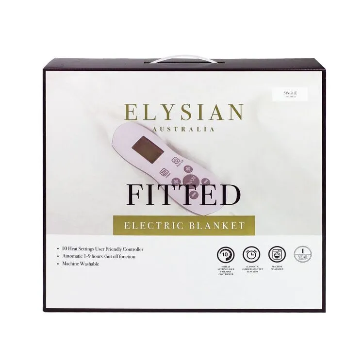 With a luxurious feel and range of adjustable heat settings, keep cosy and warm this winter with the Elysian Fitted Electric Blanket with 9 Settings Single Bed FKELB13-S. This Elysian electric blanket features a plush 450g polyester fabric construction and 9 heat settings, fitted to attach securely to a single sized bed. A 1-9 hour auto off timer will keep you warm all night long!
