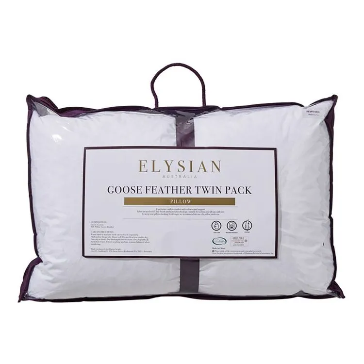 Experience endless comfort with the Elysian Goose Feather Pillow 2 Pack. The goose feather is easily malleable, making it perfect for optimal support for all types of sleepers. The natural cotton cover is made thick to be comfortable for year-round use whilst also stopping feathers from poking through the casing. Antibacterial tested with ultra-fresh, these pillows are perfect for asthma and allergy sufferers. To keep your pillow fresh we recommend using pillow protectors.