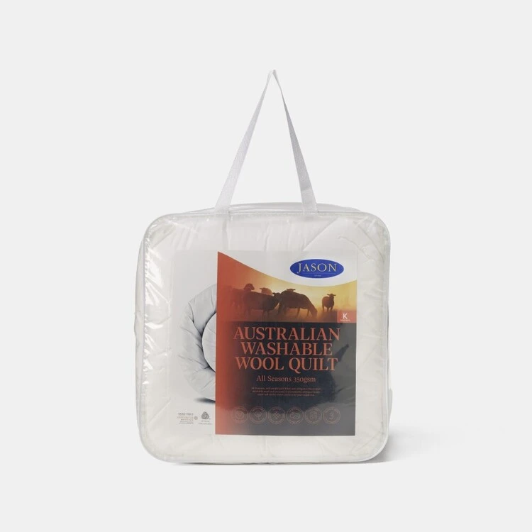 The Jason 350 GSM Australian Wool Quilt is an all seasons, mid-weight quilt which is filled with 350 gsm of Australian washable wool and encased in a breathable and luxuriously super soft cotton cover. The quality Australian wool creates a unique breathing material that naturally ventilates the body to create the perfect comfortable sleeping environment throughout the year. It is machine washable for easy care and maintenance.