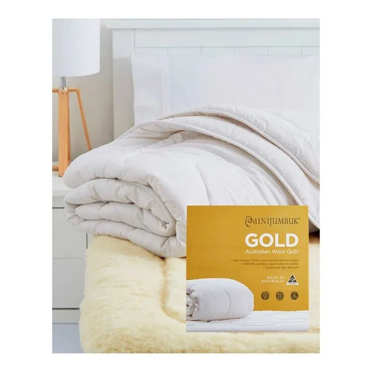 Lightweight meets ultimate warmth, the MiniJumbuk Gold 450 GSM Australian Wool Quilt guarantees superior quality Australian wool for cosy, lightweight comfort. Made using MiniJumbuk’s Airlight technology, the wool is stacked in layers within the quilt to provide extra insulation, whilst keeping the quilt as lightweight as possible. The natural wool fibre makes it suitable for those with allergies and asthma concerns, and the 5 year guarantee puts your mind at peace as you snuggle up in one of highest quality quilts that Australia has to offer. The wool fill in all MiniJumbuk products has been treated with Ultra-Fresh. This is an anti-bacterial treatment that provides lasting freshness and hygiene for effective limitation of dust mites.