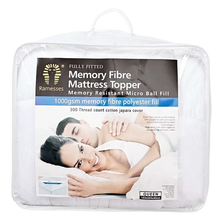 Enjoy luxurious rest with the Ramesses 1000 GSM Memory Fibre Mattress Topper, featuring a 300 thread count cotton japara cover and 1000 GSM micro ball fill for exceptional cushioned comfort. The micro ball fibre fill has memory resistant, designed to bounce back after use to avoid permanent contouring and structural degradation. With anti-dust mite, anti-microbial and hypo-allergenic properties, this fully fitted pillowtop mattress topper provides extra comfort for a good night’s sleep.