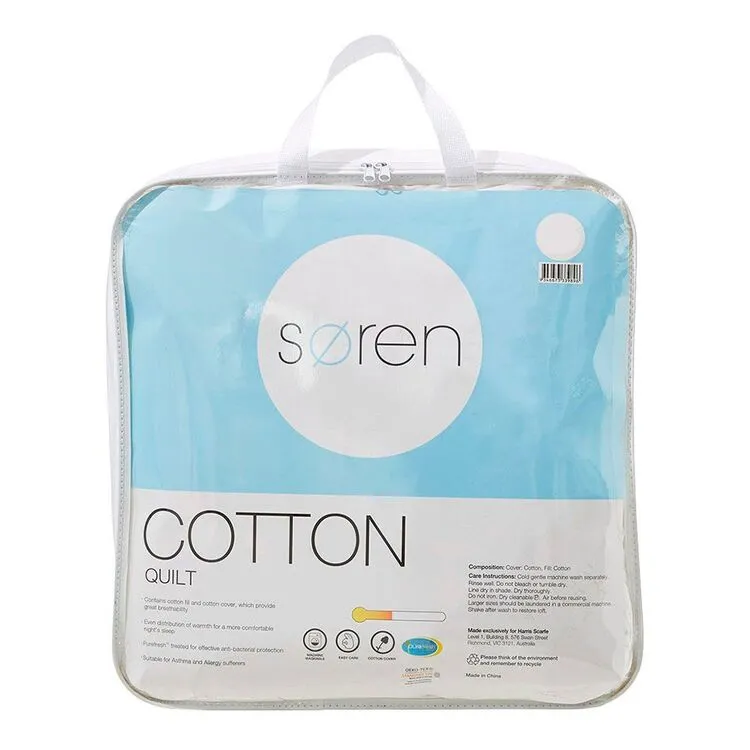 This Soren Cotton Quilt provides great breathability and an even distribution of warmth for a more comfortable night’s sleep. Crafted from 100% cotton fabric, this quilt is lightweight and smooth, perfect for use any time of the year. This quilt is Pure fresh treated for effective anti-bacterial protection, which is perfect for asthma and allergy sufferers.