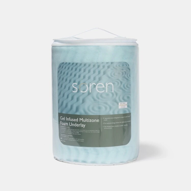 Bring the comfort back in the bedroom with the Soren Gel Infused Foam Underlay. With an original multi zone design, this underlay is tailor-made to the human body with 5 different foam sections to contour to your body to help support your posture and create the ideal environment for you whilst you sleep.