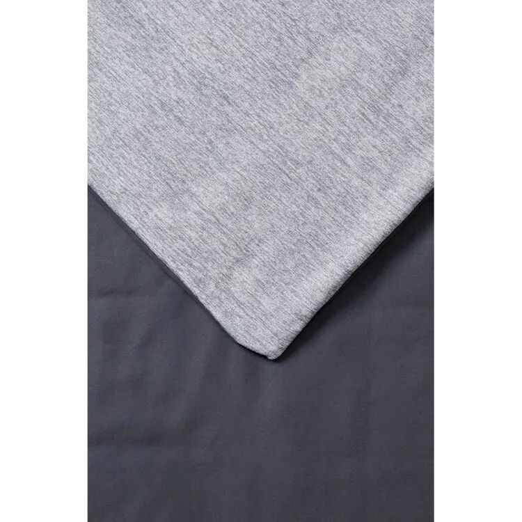 This weighted blanket is covered in a down proof microfibre fabric and filled with a combination of polyester fibre and glass beads